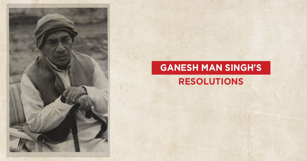 In April, 1990, towards the end of the revolution, Ganesh Man Singh made three resolutions from a hospital bed in Bir Hospital: