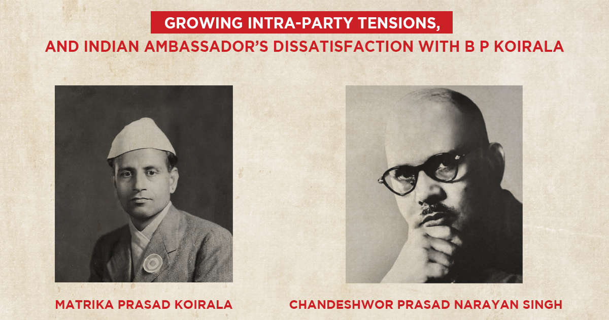 Growing intra-party tensions, and Indian Ambassadors dissatisfaction with B P Koirala